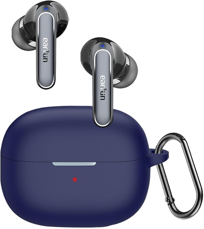 For EarFun Air 2/EarFun Air 2 NC ケース [HVUYAL] 紛失防止用のフックを搭載した 軽量 キズ防止 防塵 傷つきにくい 柔らかなシリカゲルのスポーツクールなデザイン 衝撃 吸収 スリム ソフト ケースカバー 落下防止保護(ブルー)