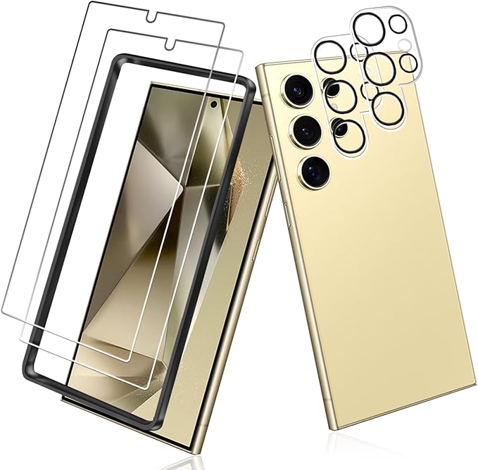 【4枚セット】 2枚 Galaxy S24 Ultra ガラスフィルム ギャラクシー S24 Ultra 専用保護フィルム + 2枚 For Galaxy S24 Ultra カメラ保護フィルム 強化ガラス 超薄型 液晶保護フィルム FOR S24 Ultra 専用の 日本旭硝子素材AGC 高透過率 硬度9H 飛散防止 ラウンドエッジ加工 Galaxy S24 Ultra 用の 液晶保護フィルム PCduoduo 【ガイド枠付き】
