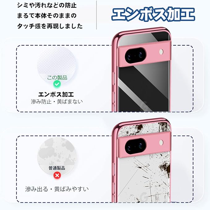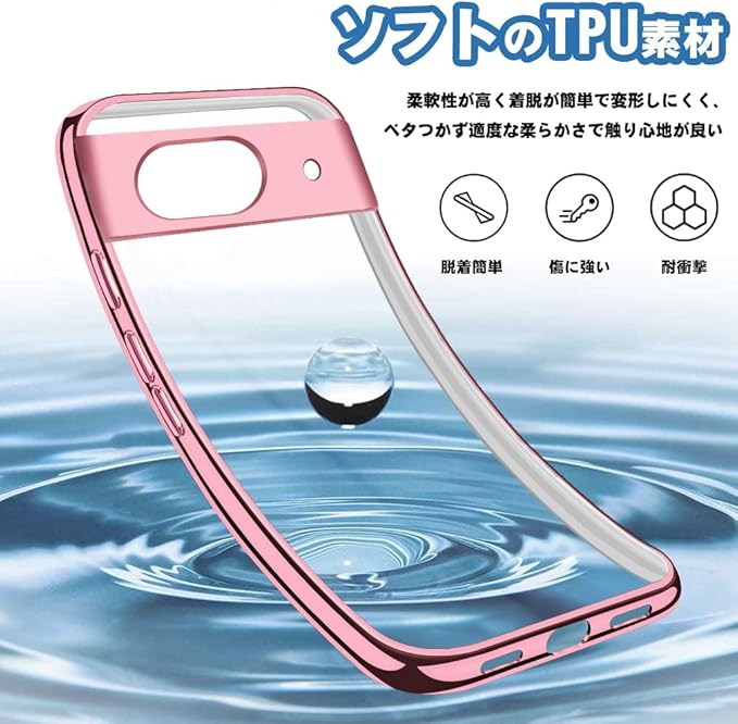 Google Pixel 8a ケース クリア TPU ピクセル8a カバー スリム 薄型 軽量 透明 ソフト 耐衝撃 メッキ加工 傷つけ防止 人気 全面保護 スマホケース ローズゴールド