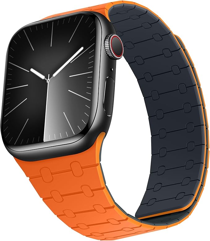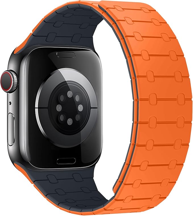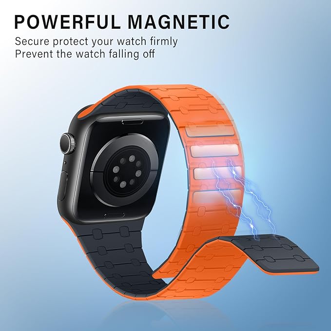 [ZZDZZ] コンパチブル Apple Watch バンド 42mm 41mm 40mm 38mm 強力なシリコン磁気 防水 に対応 Apple Watch シリーズ10 9 8 7 6 5 4 3 2 1 SE(オレンジ/ミッドナイトブルー)