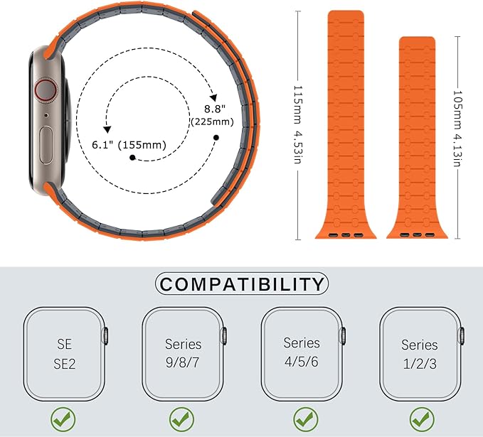 すべてのモデルに対応: ZZDZZシリコン磁気時計バンドは、Apple Watch 38mm 40mm 41mm 42mm、iWatch Series SE2/SE/10/9/8/7/6/5/4/3/2/1に対応。 6.1インチから8.8インチ(155mm-225mm)の手首に適しています。 ヒント:時計の裏側のサイズを確認し、必要に応じて正しいサイズを選択してください。