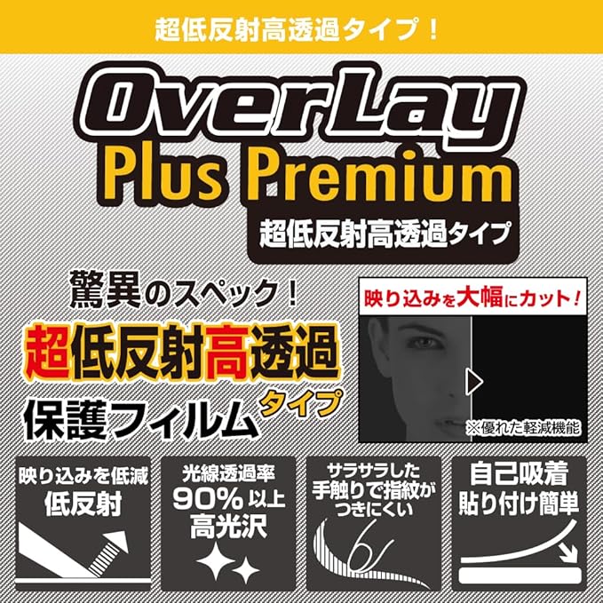 貼ったときの画面のギラツキを抑えた、高光沢に近いアンチグレアフィルムです。日光や蛍光灯の反射を抑え、画面が見やすくなる機能に加え、表面がさらさらなので指すべりもよく、指紋が目立ちません。
