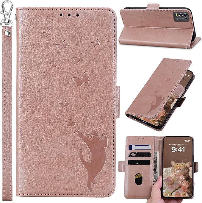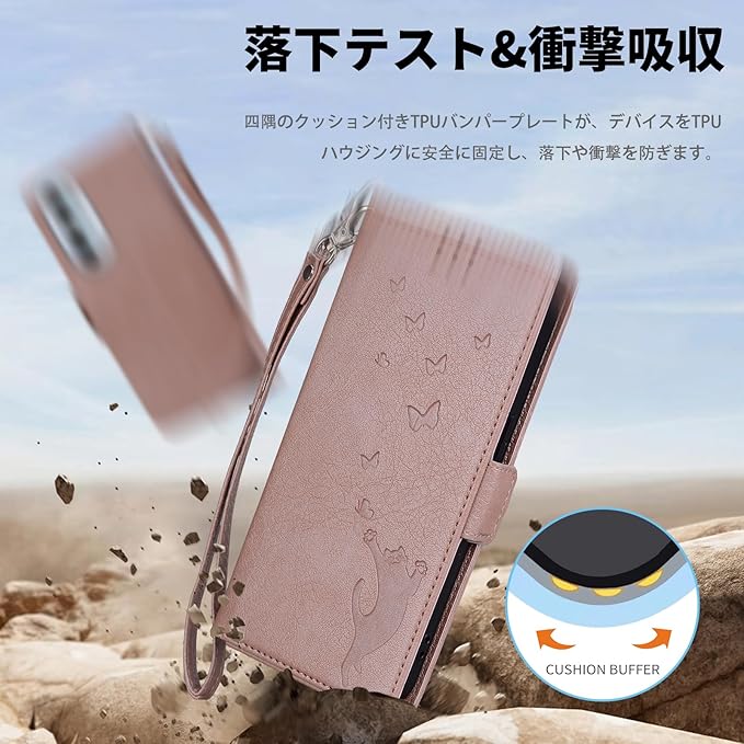 ZTE Libero 5G III ケース 手帳型 a202zt ケース 手帳型 リベロ5g3 スマホケース 手帳型 リベロ 5g3 ケース libero 5g iii スマホケース 蝶と猫の3Dパターン スタンド カード収納 リストストラップ プレミアム耐久性PUレザー 強い磁気吸引 リストストラップ 落下防止 libero 5g iii カバー A202ZT カバー[ローズゴールド]