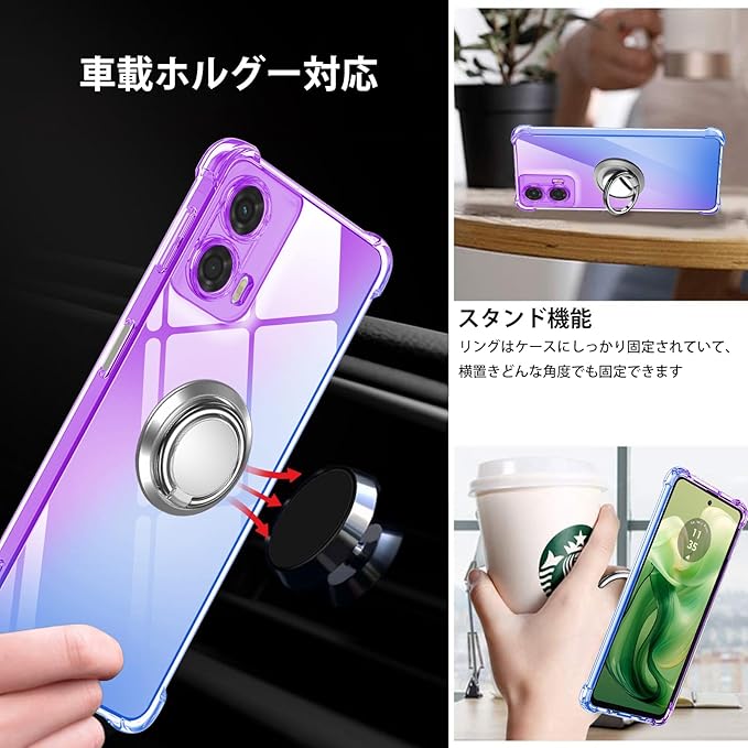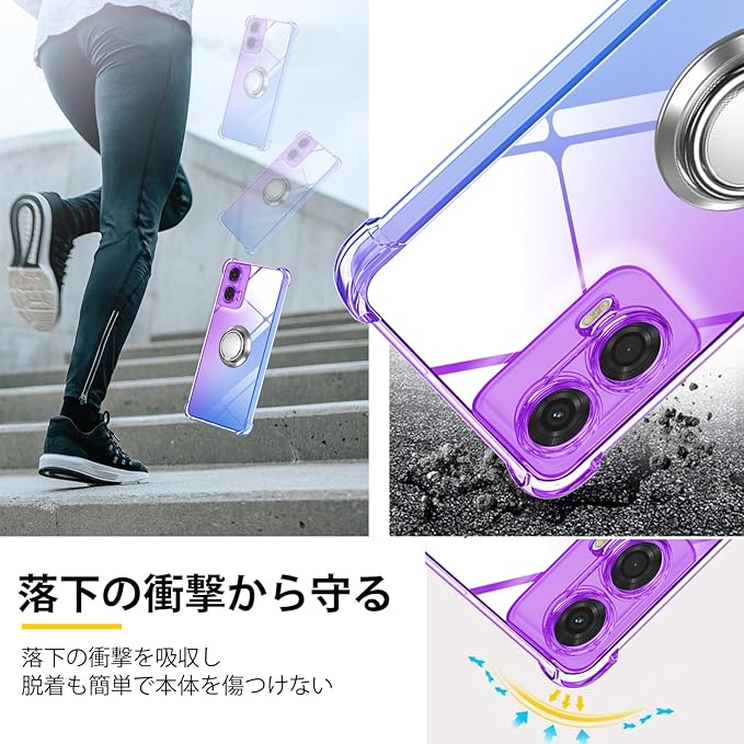 Moto G24 ケース リング TPU 薄型 軽量シリコン Moto G24 ケース グラデーション色 ケース 耐衝撃 指紋防止 車載ホルダー対応 防塵 一体型 人気 携帯カバー(パープルブルー)