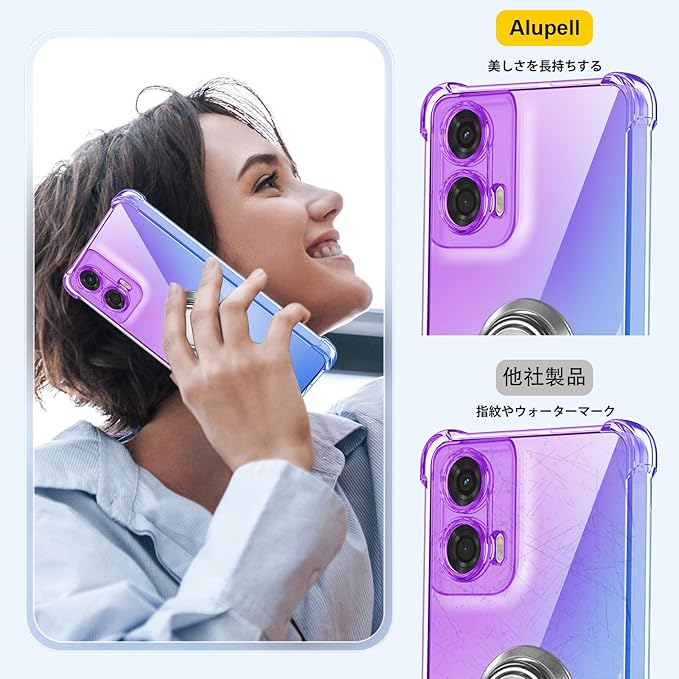Alupell Moto G24 ケース リング TPU 薄型 軽量シリコン ケース グラデーション色 パープルブルー 耐衝撃 指紋防止 車載ホルダー対応 防塵 一体型