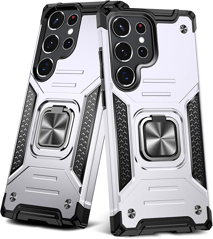 Galaxy S23 Ultra 用ケース リング付きカバー 耐衝撃 スタンド機能 車載ホルダー レンズ保護 ギャラクシーS23 Ultra 用スマホケース PC TPUバンパー 防塵 人気 落下防止 滑り止め 指紋防止 携帯カバー 銀 A118