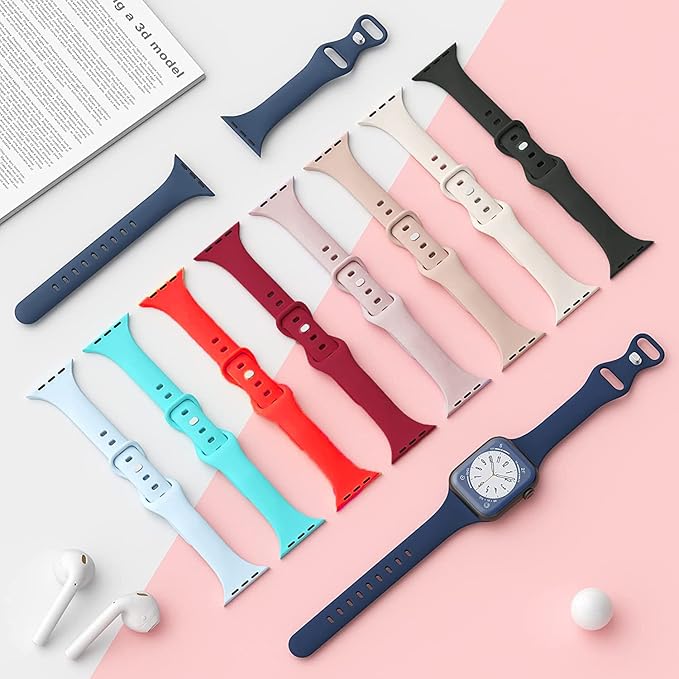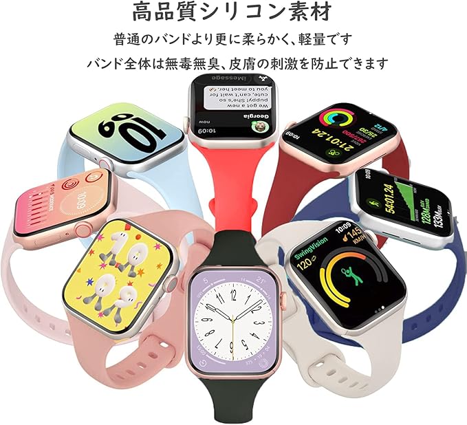 コンパチブル Apple Watch バンド レディース スリム シリコン スポーツ46mm 45mm 44mm 42mm 41mm 40mm 38mm アップルウォッチ バンド iwatch Series 10/9/8/7/SE/6/5/4/3/2/1 交換ベルト 通気 柔らかい 防水 (スターライト/ミルクティー、46/45/44/42mm(series3の42mm))