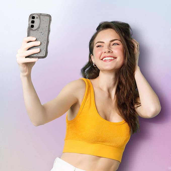 QLTYPRI Galaxy A54 5G ケース クリア TPU カバー ウェーブ おしゃれ 韓国 可愛い ウェーブ グリッター 透明 薄型 軽量 耐衝撃 滑り止め (SC-53D / SCG21) スマホケース ワイヤレス充電対応 ストラップホール付き ギャラクシーA54 ケース 6.4インチ 対応 - ブラック