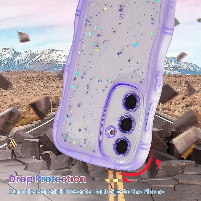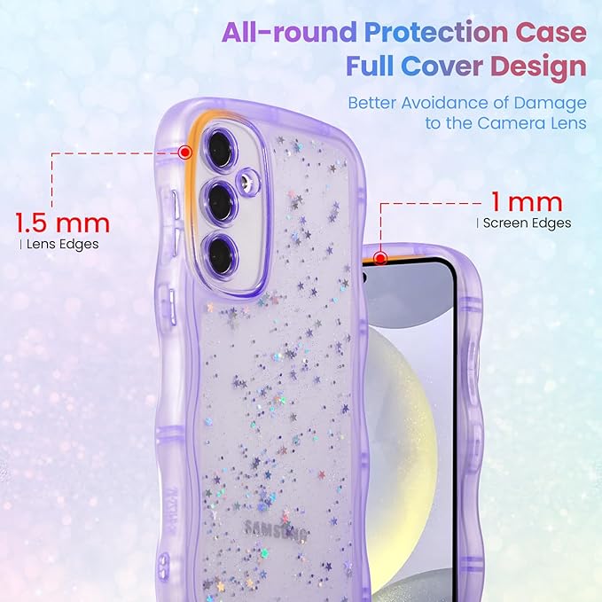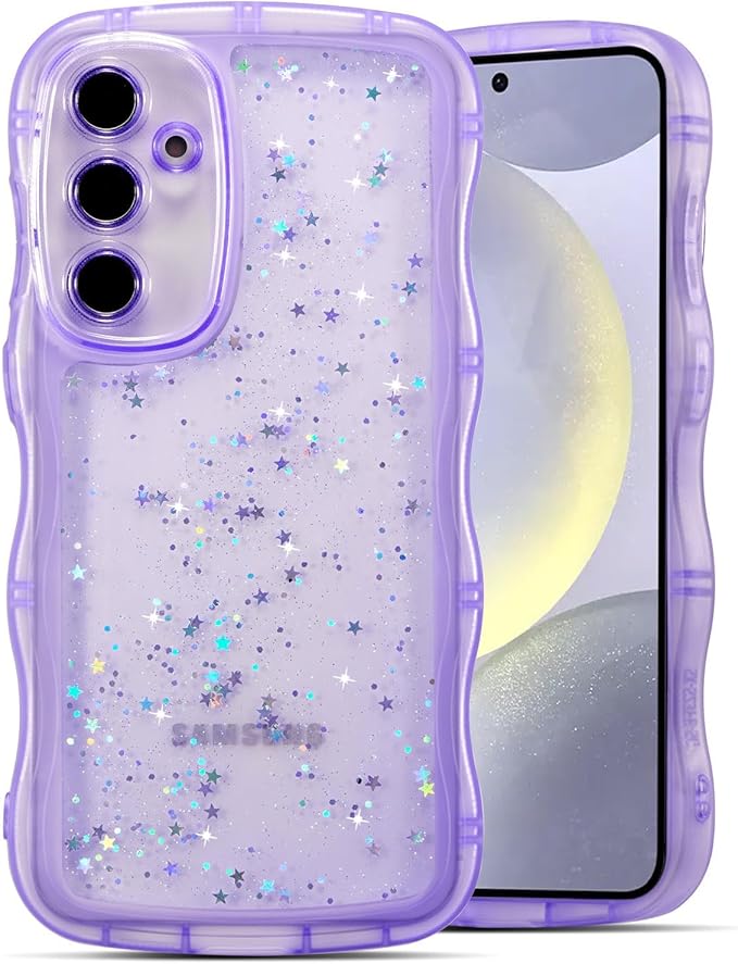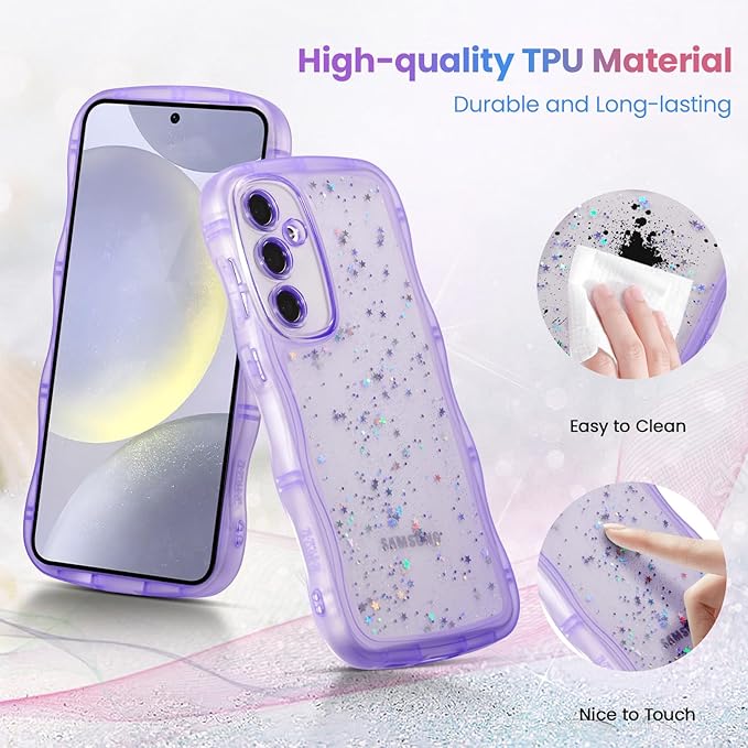 QLTYPRI Galaxy S24 ケース クリア TPU カバー ウェーブ おしゃれ 韓国 可愛い ウェーブ グリッター 透明 薄型 軽量 耐衝撃 滑り止め (SC-51E / SCG25) スマホケース ワイヤレス充電対応 ストラップホール付き ギャラクシーS24 ケース 6.2インチ 対応 - パープル