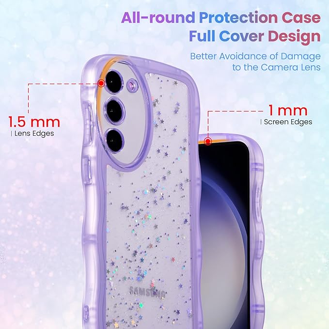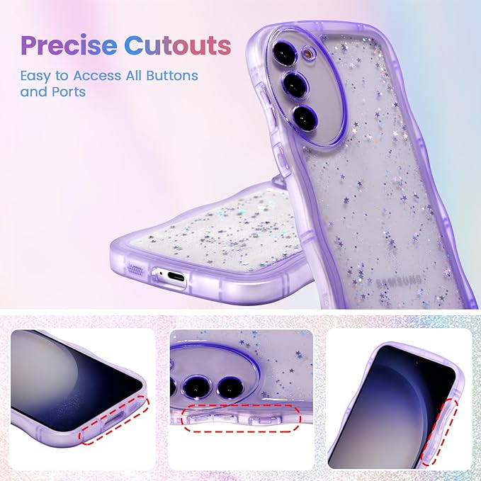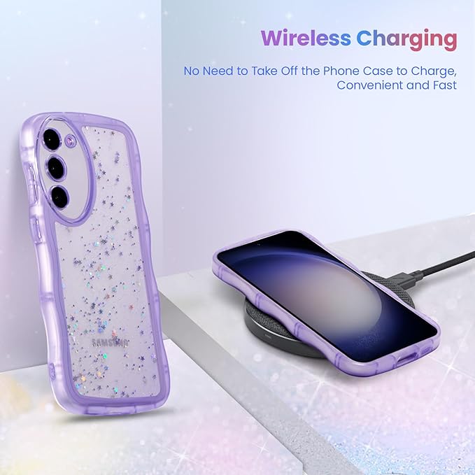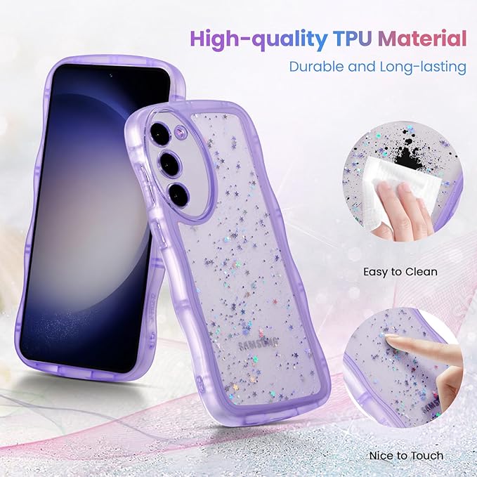 QLTYPRI Galaxy S23 ケース クリア TPU カバー ウェーブ おしゃれ 韓国 可愛い ウェーブ グリッター 透明 薄型 軽量 耐衝撃 滑り止め (SC-51D / SCG19) スマホケース ワイヤレス充電対応 ストラップホール付き ギャラクシーS23 ケース 6.1インチ 対応 - パープル