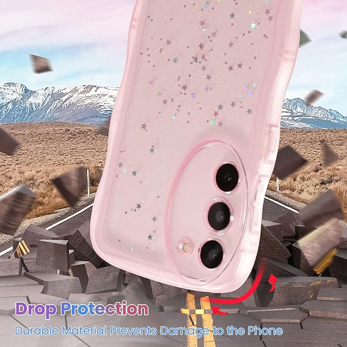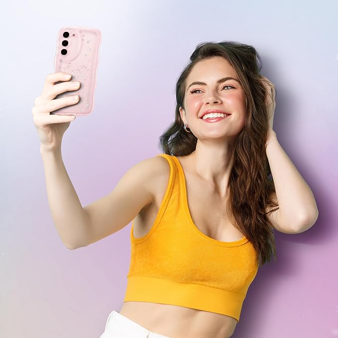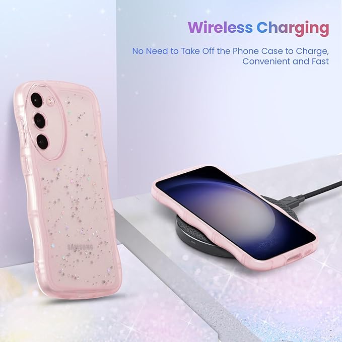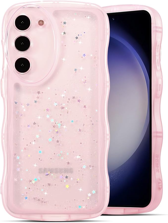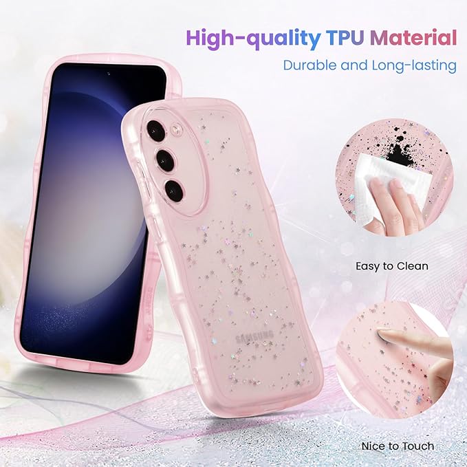 QLTYPRI Galaxy S23 FE ケース クリア TPU カバー ウェーブ おしゃれ 韓国 可愛い ウェーブ グリッター 透明 薄型 軽量 耐衝撃 滑り止め スマホケース ワイヤレス充電対応 ストラップホール付き ギャラクシーS23 FE ケース 6.4インチ 対応 - ピンク