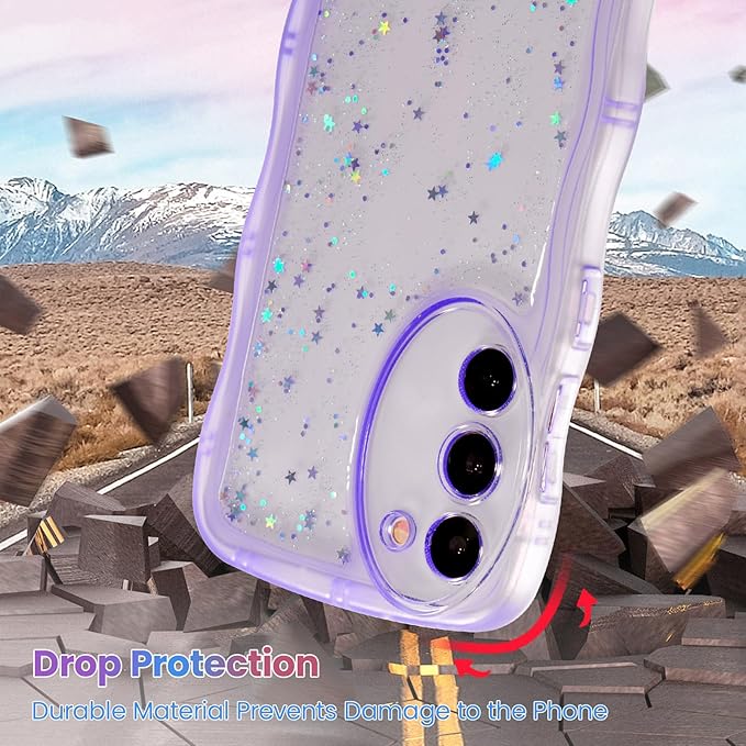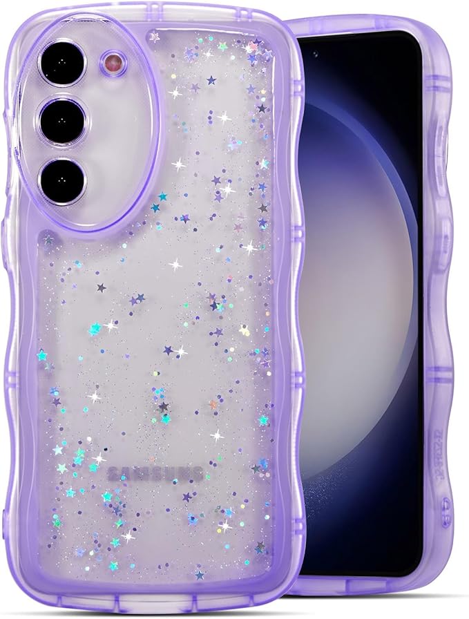QLTYPRI Galaxy A54 5G ケース クリア TPU カバー ウェーブ おしゃれ 韓国 可愛い ウェーブ グリッター 透明 薄型 軽量 耐衝撃 滑り止め (SC-53D / SCG21) スマホケース ワイヤレス充電対応 ストラップホール付き ギャラクシーA54 ケース 6.4インチ 対応 - パープル