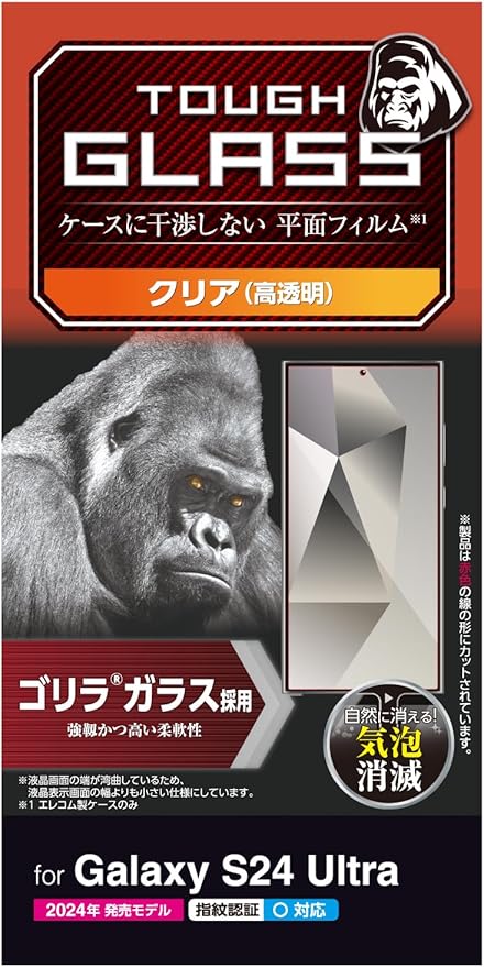 エレコム Galaxy S24 Ultra SC-52E ガラスフィルム 割れない ゴリラガラス 光沢 グレア 指紋認証 指紋防止 硬度10H なめらか 0.21mm 飛散防止設計 気泡ゼロ PM-G242FLGO