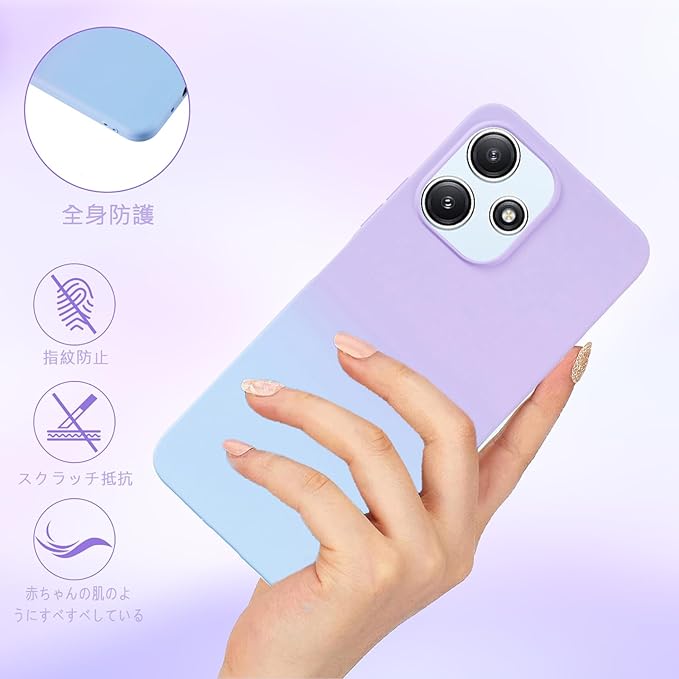 【 Agaiy 】 Redmi 12 5G/Redmi 12 4G 対応 ケース グラデーションカバー 薄型 柔軟 軽量 レッドミー12 5g スマホ保護カバー マット質感 全面保護 耐衝撃 TPU ケース 滑り止め 落下防止 redmi125g カバー (パープル/ブルー)