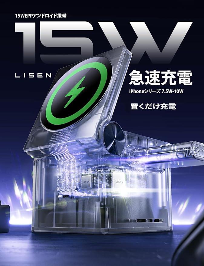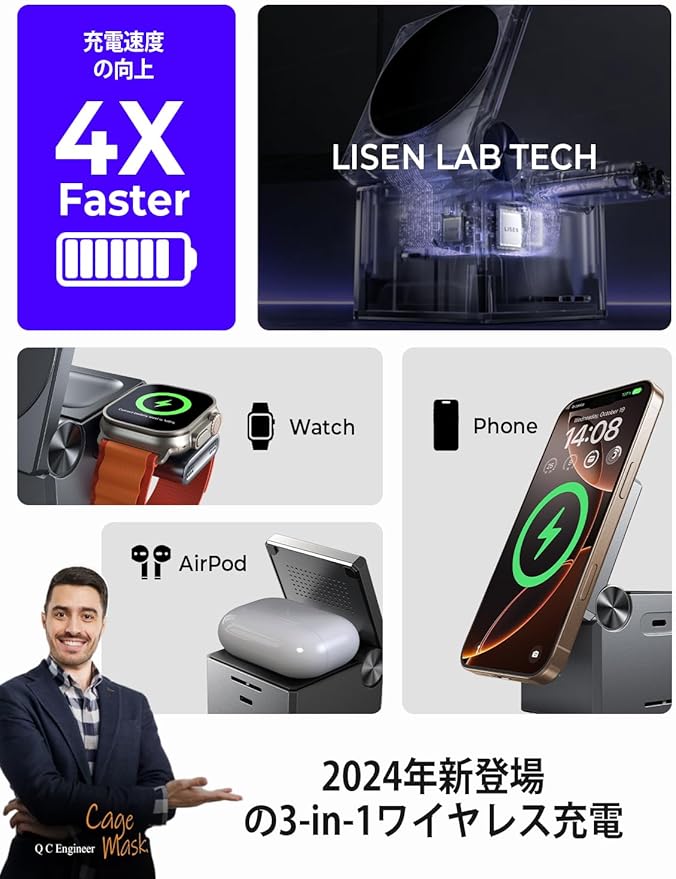 LISEN 3in1 ワイヤレス充電器 マグセーフ充電器 magsafe 置くだけ充電 折り畳み式15W/10W/7.5W/5W 充電スタンド スマホスタンド充電器iPhone16 15Plus/15ProMax /14/13/12Pro/Max/Apple Watch/Airpods 16に対応