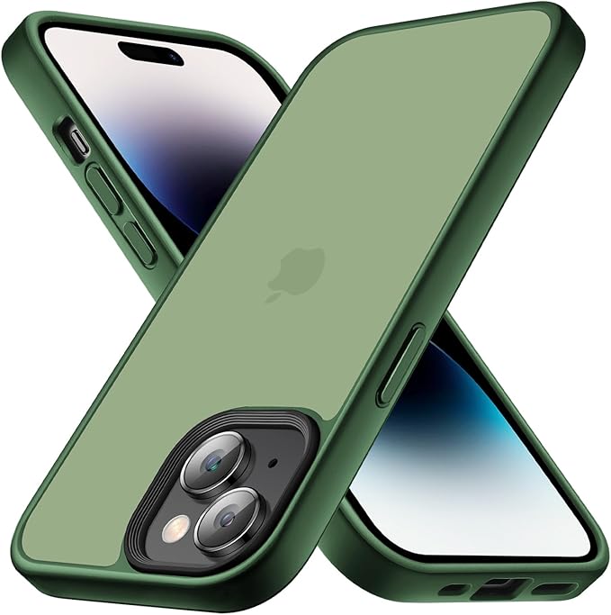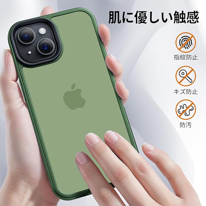 COSOIK iPhone 15 用 ケース 半透明 衝撃吸収 米軍MIL規格取得 マット感 黄ばみなし レンズ全面保護 耐衝撃ストラップホール付き 6.1インチ アイフォン 15用カバー グリーン