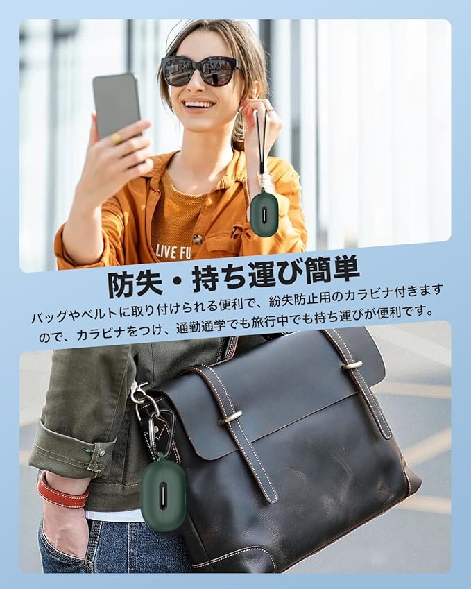 【使いやすい】ワイヤレスイヤホンの充電方法(通常またはワイヤレス充電)に関係なく、便利な充電のための底部の切り欠きを取り出す必要はありません。 カラビナキーチェーンが付属