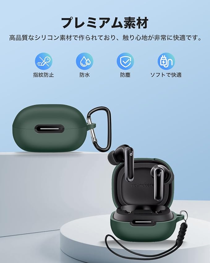 【強固な保護性】高品質シリコン製で、全くかさばることなくお使いのイヤフォンを落下、衝撃、擦り傷からしっかり保護します。また柔軟性も高く、汚れや指紋がつきにくいです。(水洗い可能)
