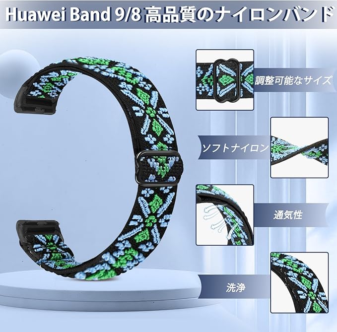 【対応機種】このナイロン製弾性交換バンドは Huawei Band 9/Huawei Band 8とのみ互換性があります。