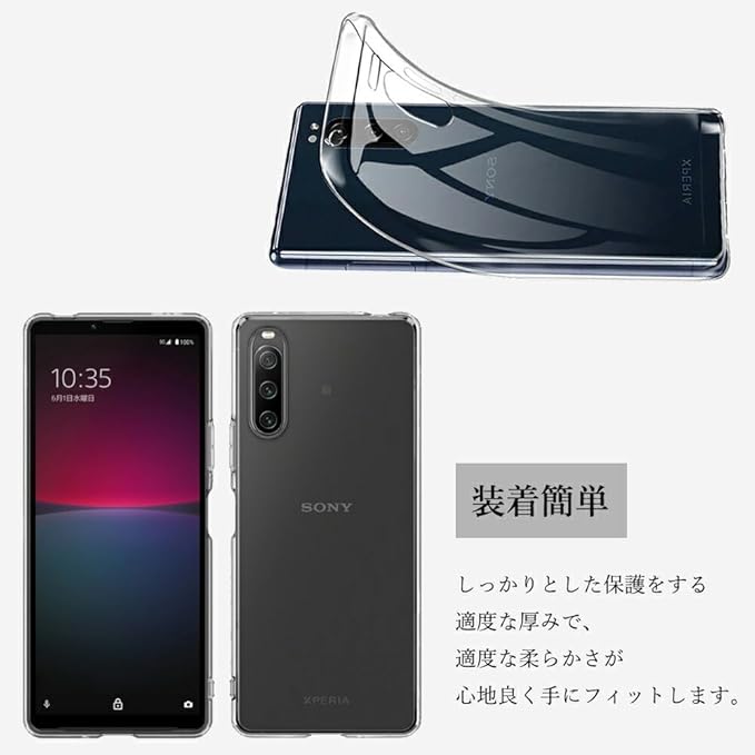 KODA| Xperia 10 Ⅵ ケース 透明 クリア ストラップホール付き 耐摩 軽量 落下防止 衝撃吸収 保護カバー TPU素材 ソフトケース