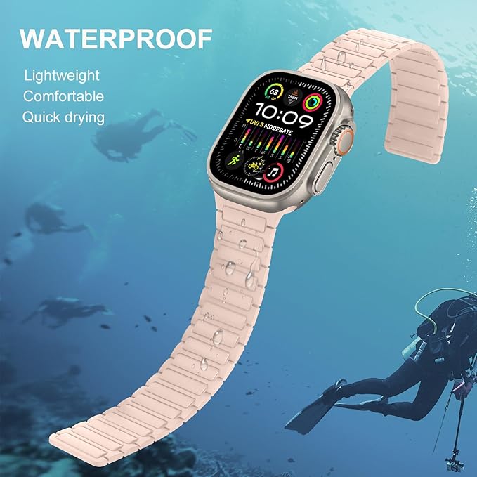 [Suphart] コンパチブル Apple Watch バンド49mm 46mm 45mm 44mm 42mm 磁気シリコン防水バンド に対応 Apple Watch Ultra 2 Ultra シリーズ 10 9 8 7 6 5 4 3 2 1 SE (49mm/46mm/45mm/44mm/42mm, ピンク)