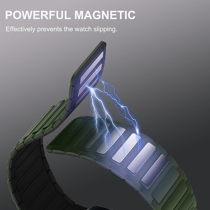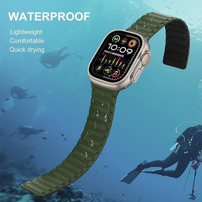 [Suphart] コンパチブル Apple Watch バンド49mm 46mm 45mm 44mm 42mm 磁気シリコン防水バンド に対応 Apple Watch Ultra 2 Ultra シリーズ 10 9 8 7 6 5 4 3 2 1 SE (49mm/46mm/45mm/44mm/42mm, グリーン/ブラック)