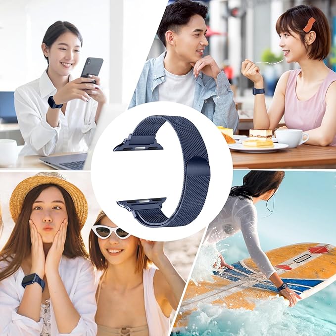 【優れた素材の通気性】対応 アップルウォッチバンドのデザインは通気性を考慮しており、メッシュ構造が手首周りの通気性を向上させ、汗をかく季節でも蒸れずに快適にご使用いただけます。独特のマグネットロックと研磨工芸で研磨されたエッジにより、日常の使用に強