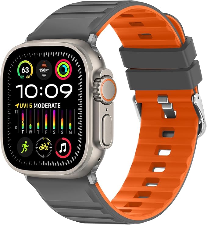 [Suphart] コンパチブル Apple Watch バンド49mm 46mm 45mm 44mm 42mm 柔らかいシリコン製通気性防水スポーツバンド に対応 Apple Watch Ultra 2 Ultra シリーズ 10 9 8 7 6 5 4 3 2 1 SE (グレー/オレンジ)