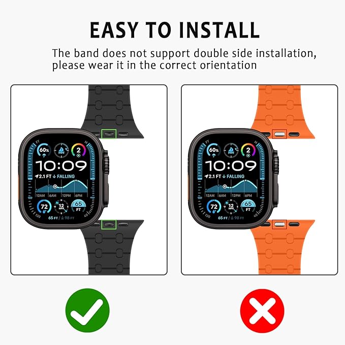 [ZZDZZ] コンパチブル Apple Watch バンド 42mm 44mm 45mm 46mm 49mm 強力なシリコン磁気 防水 に対応 Apple Watch Ultra 2 Ultra シリーズ10 9 8 7 6 5 4 3 2 1 SE(ブラック/オレンジ)