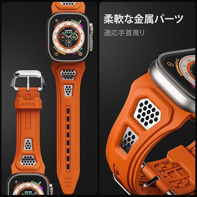ULTIMAL ウォッチ バンド for Apple Watch バンド 42mm/44mm/45mm アップルウォッチバンド iwatch series 9/8/7/6/5/4/3/2/1/SE/SE2,アップルウォッチ バンド (オレンジ)