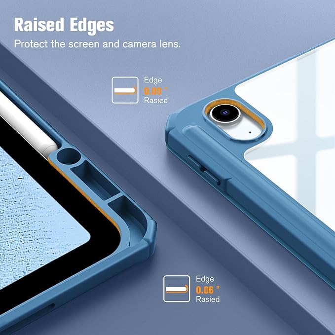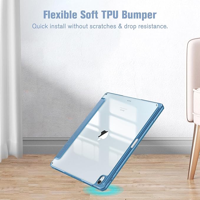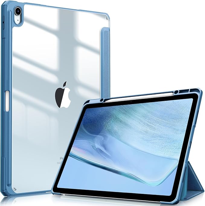 Fintie iPad Air 13インチ(M3/M2) ケース 2025/2024 透明バックカバー Apple Pencil 収納可能 Apple Pencil Proワイヤレス充電対応 三つ折スタンド スリープ機能 軽量 薄型 傷つけ防止 PU合成レザー TPU(オーシャンブルー)