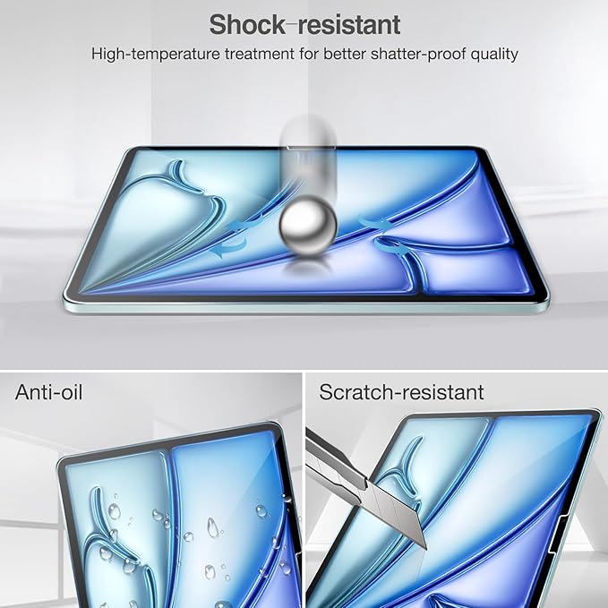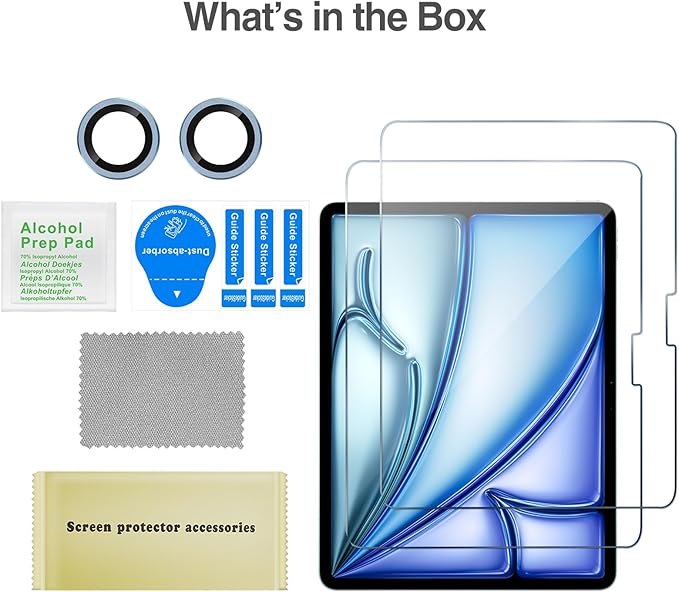 ProCase iPad Air 13インチ フィルム M3 (2025) / M2 (2024) 2枚 レンズ保護 2枚 全面吸着タイプ 耐衝撃 クリア強化ガラス 貼る工具付き