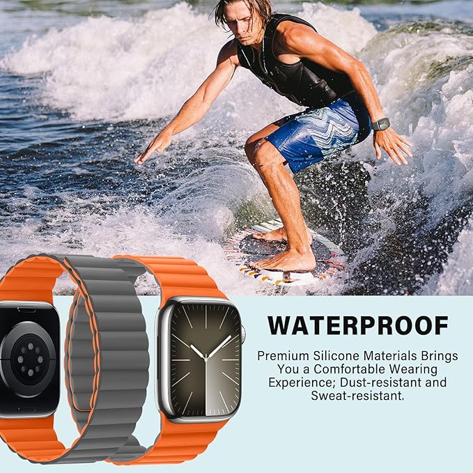 [Bisikor] コンパチブル アップルウォッチ バンド 49mm 46mm 45mm 44mm 42mm 41mm 40mm 38mm両面ウェアラブルシリコーン磁気ストラップ Series Ultra2/SE/10/9/8/7/6/5/4/3/2/1に対応 iWatch バンド 柔軟 軽量 防水(38/40/41 オレンジ/グレー)