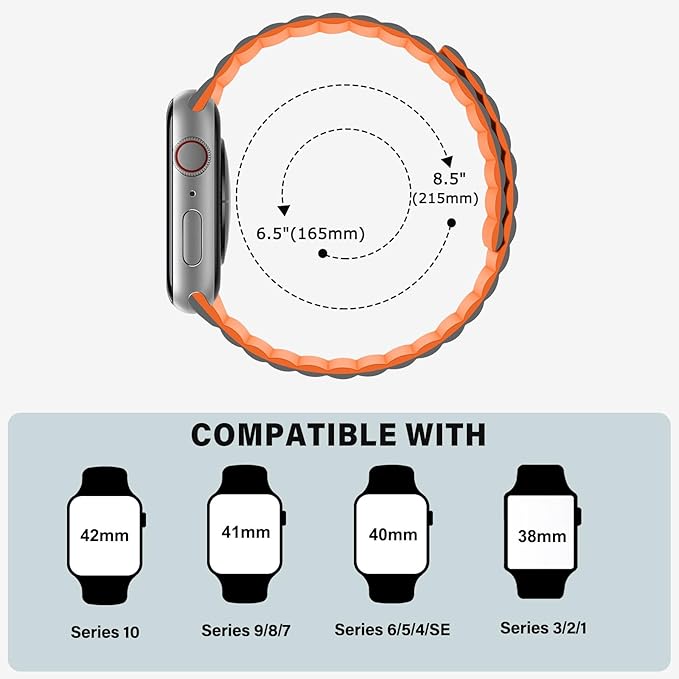 [対応機種]:Bisikor アップルウォッチ42mm 41mm 40mm 38mm、iWatch SE、iWatch Series 10 Series 9 Series 8 Series 7 Series 6 Series 5 Series 4 Series 3 Series 2 Series 1に対応するマグネットシリコンストラップ。6.5インチ〜8.5インチ(165mm〜215mm)の手首にフィットします。正しいサイズを選択するには、時計の裏側のサイズを確認してください。