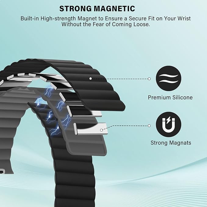 [対応機種]: Bisikor アップルウォッチ49mm 46mm 45mm 44mm 42mm、iWatch Ultra 2、iWatch Ultra、iWatch SE、iWatch Series 10 Series 9 Series 8 Series 7 Series 6 Series 5 Series 4 Series 3 Series 2 Series 1に対応するマグネットシリコンストラップ。6.5インチ〜8.5インチ(165mm〜215mm)の手首にフィットします。正しいサイズを選