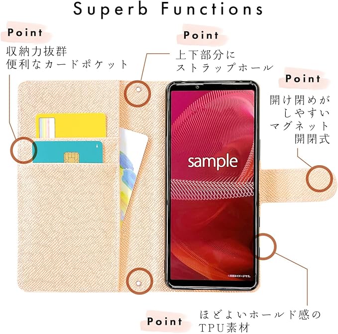 手帳部分とケース部分は接着しておりますが、強くめくると剥がれる場合がございます。ご利用のディスプレイによって、実物と見え方が若干異なる場合がございます。