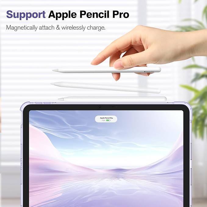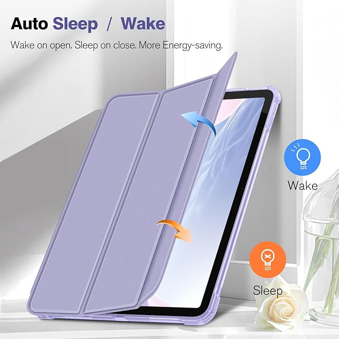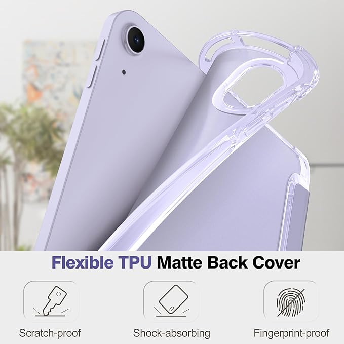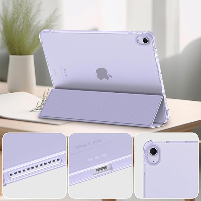 Fintie iPad Air 11インチ ケース M3 (2025 第7世代) / M2 (2024 第6世代) / Air 5/4 ケース 2022/2020 10.9 インチ 半透明ソフトTPUバックカバー Pencil 収納可能 Pencil Proワイヤレス充電対応 三つ折スタンド スリープ機能 軽量 薄型 傷つけ防止 PU合成レザー 保護カバー(ライラックパープル)