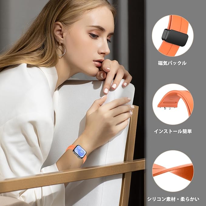 [RicYeel] 磁気付き シリコンバンド For HUAWEI WATCH FIT 3 用 バンド マグネット付き 装着簡単 スポーツバンド ストラップ 替えバンド 交換ベルト HUAWEI WATCH FIT 3 対応 柔らかい 調整バンド (オレンジ)