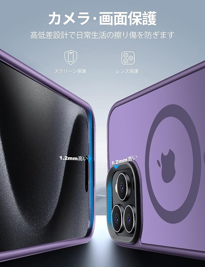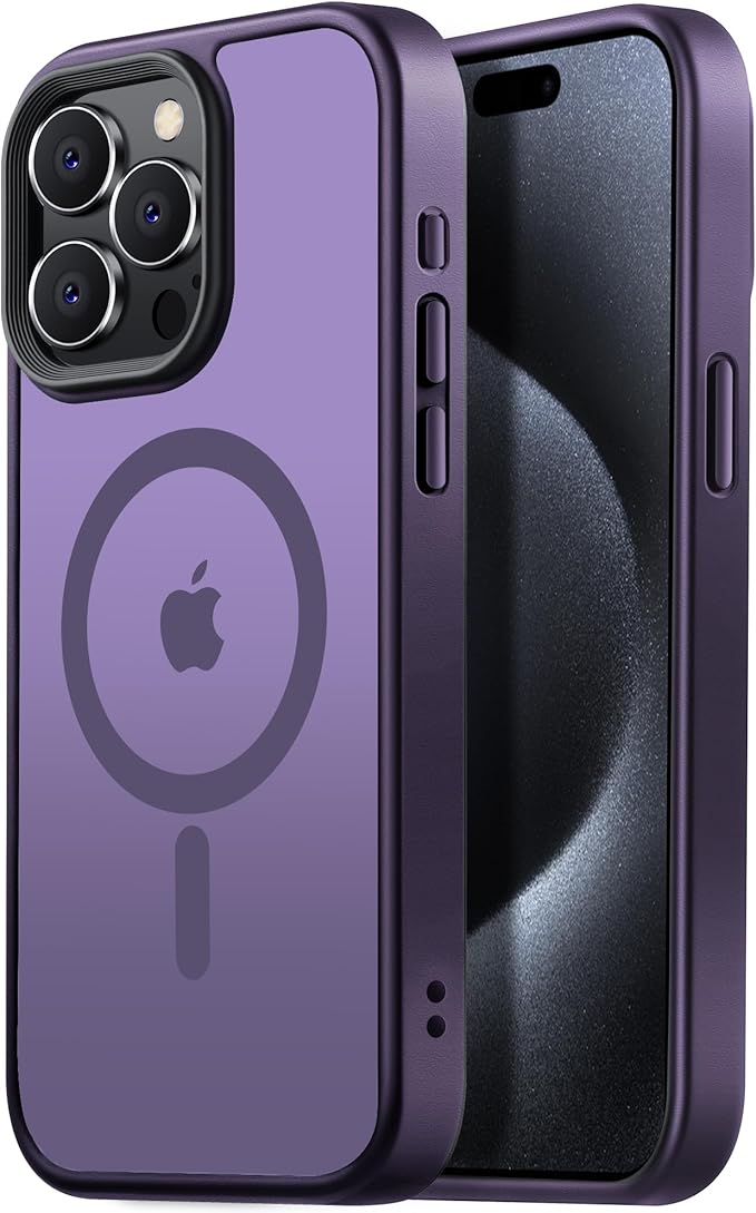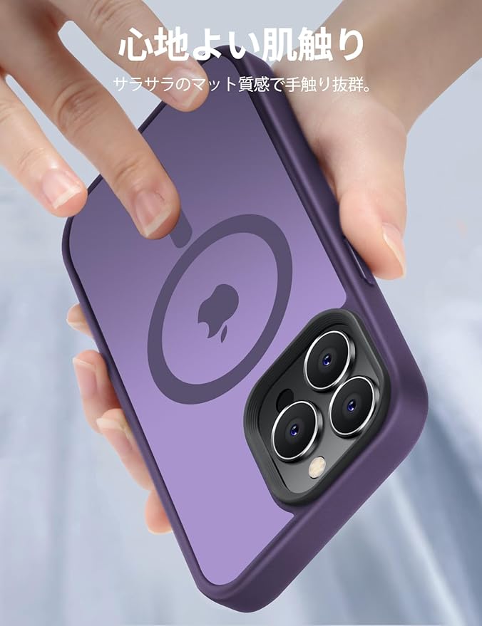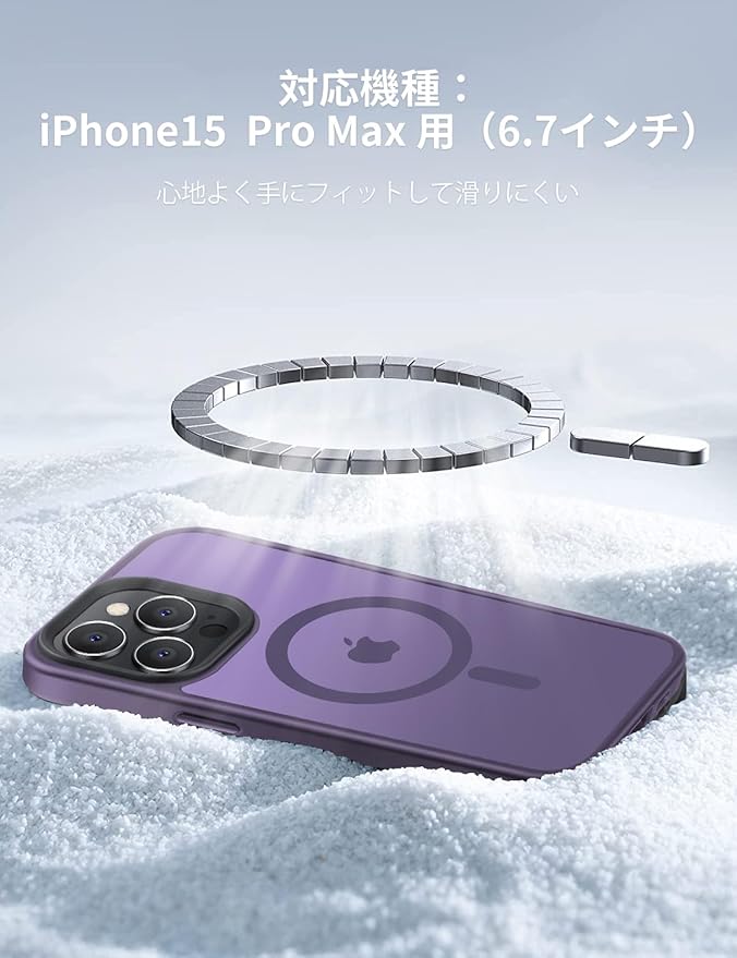 【米軍規格・MagSafe対応】Gtsoho iPhone 15 pro max 用 ケース 半透明 マグネット搭載 ワイヤレス充電 耐衝撃 耐久性 全面保護 黄ばみなし ストラップホール付き イフォン15 pro max用 カバー マグセーフ対応 濃い紫