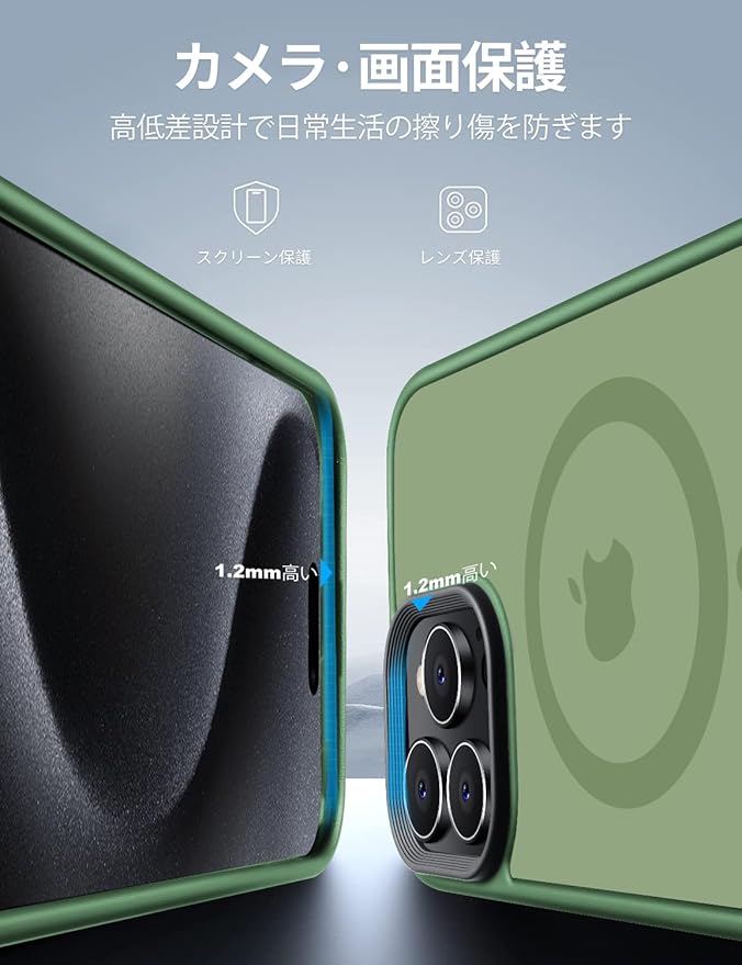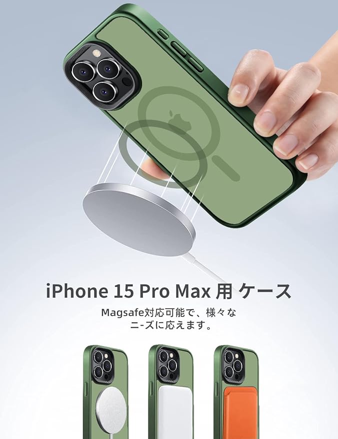 【米軍規格・MagSafe対応】Gtsoho iPhone 15 pro max 用 ケース 半透明 マグネット搭載 ワイヤレス充電 耐衝撃 耐久性 全面保護 黄ばみなし ストラップホール付き イフォン15 pro max用 カバー マグセーフ対応 消し緑