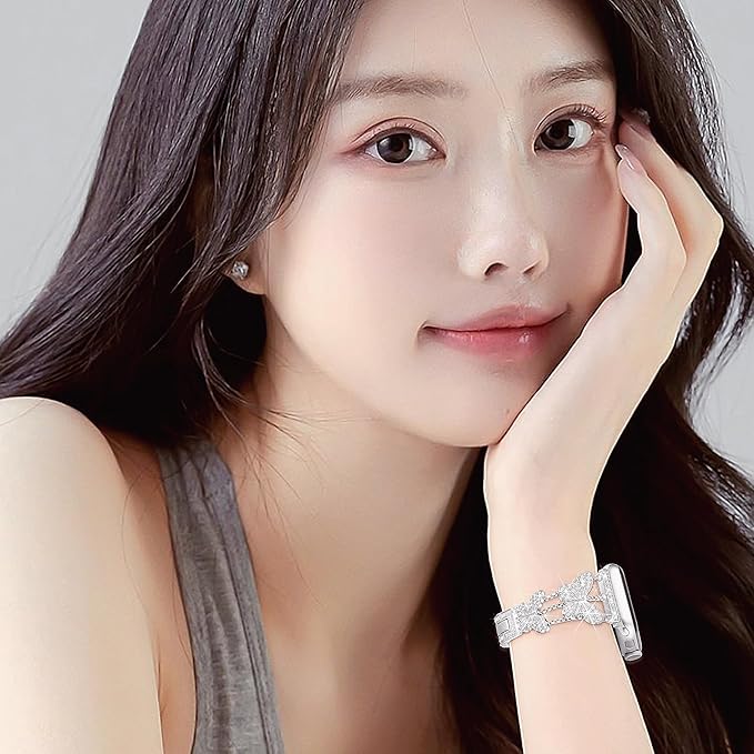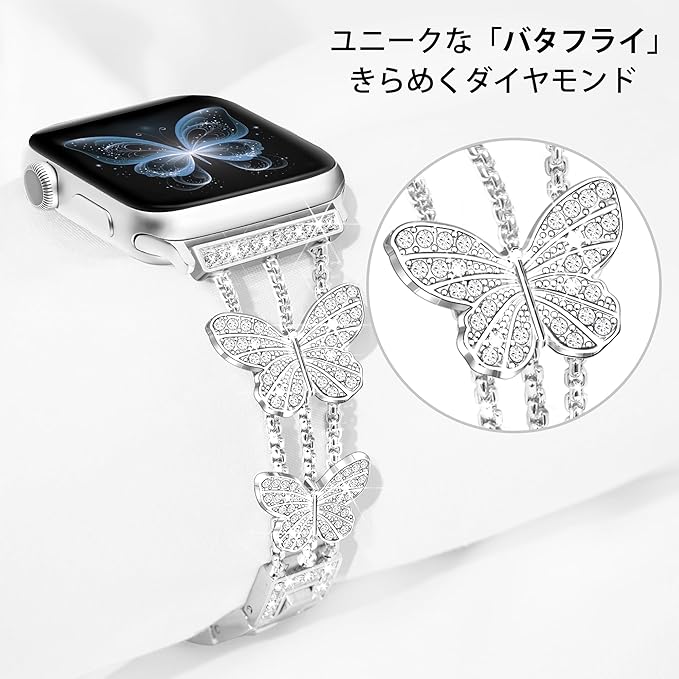 【花開く優雅さ】煌めくダイヤモンドが蝴蝶の形をしたApple Watchバンドに散りばめられ、あなたの手元を一段と華やかに彩ります。どんな場でも、このファッショナブルなアップルウォッチ バンドは、あなたの優雅さを際立たせ、独自のスタイルを主張します