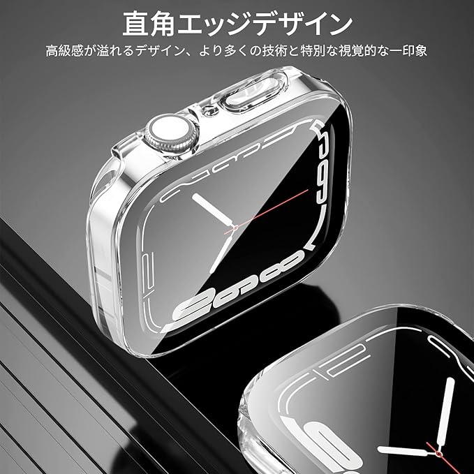 【2枚 2024防水??】YUGYUG 対応 Apple Watch 9/8/7 41mm ケース アップルウォッチ9/8/7 41mm ケース PC素材 IP68 防水ケース 3D直角エッジデザイン 光沢式 アップルウォッチ カバー ガラスフィルム 一体型 日本旭硝子材 二重構造 Apple Watch カバー 全面保護 強化ガラス キズ防止(41mm,クリア)