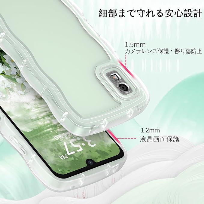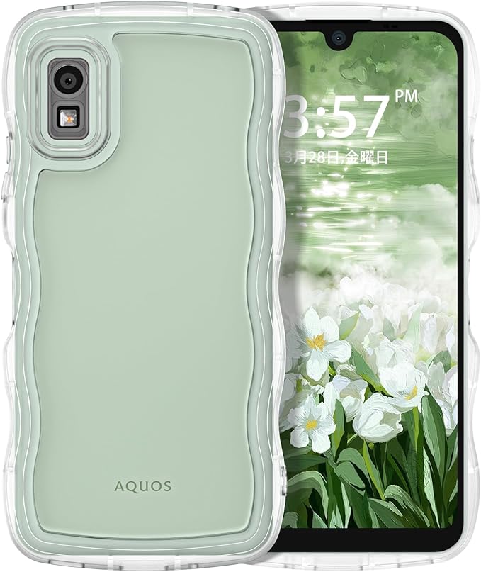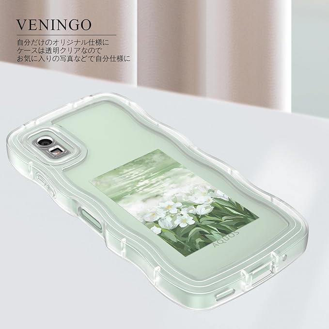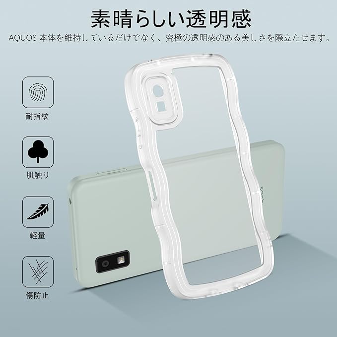 VENINGO AQUOS wish3 ケース SH-53D カバー クリア ウェーブ おしゃれ 韓国 可愛い スマホケース 人気 シンプル 滑り止め 薄型 軽量 耐衝撃 レンズ保護 ストラップホール付き シリコン かわいい TPU バンパー アクオスwish3ケース 5.7インチ 透明