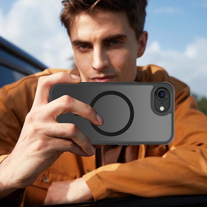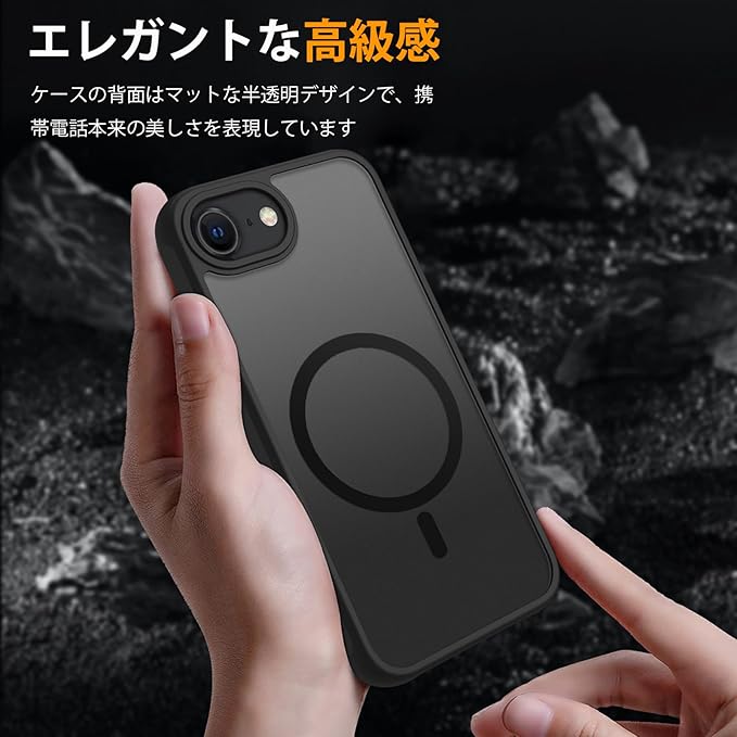 iPhone 16e ケース MagSafe対応 半透明 耐衝撃 軽量 薄型 マグネット搭載 人気 滑り止め PC 米軍MIL規格 ストラップホール付き ワイヤレス充電対応 スマホカバー EUMADOVE (ブラック, iPhone 16e)