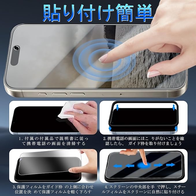 YWXTW 対応 iPhone16 Pro Max ガラスフイルム 覗き見防止 【2枚セット AGC旭硝子 ガイド枠付き 】対応 iPhone16ProMax フイルム のぞき見防止(2枚) 対応 アイフォン16 プロ マックス 保護フィルム のぞき見 プライバシーフィルム 強化ガラス 【 硬度9H 耐衝撃 飛散防止 厚さ0.26mm 気泡ゼロ 3D Touch対応 高感度 指紋防止 ラウンドエッジ加工 】 YWXT-FK16PM