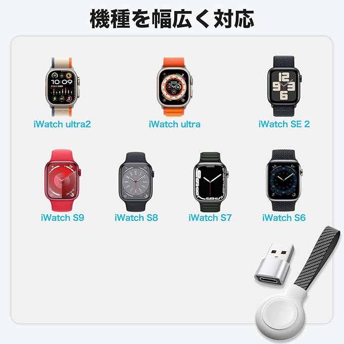 【Apple Watch専用】Apple Watch専用の充電器、このワイヤレス充電器はApple Watch Series 9/8/7/6/Ultra 2/Ultra/SE2 と互換性があります。(ご注意:他のスマートウォッチとは互換性がありません。)