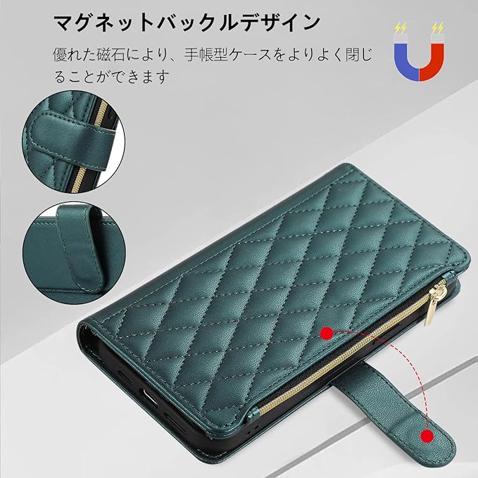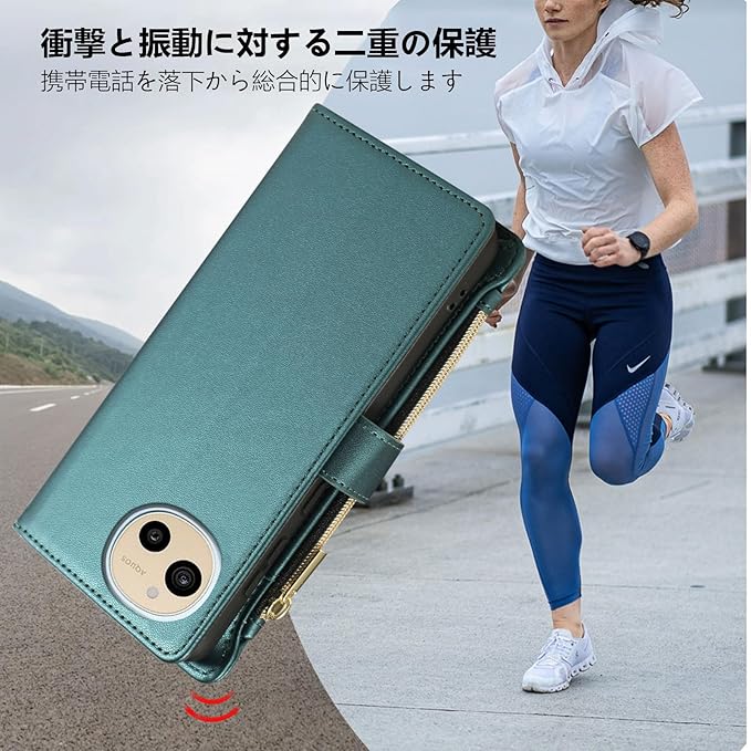 Aquos Sense9 ケース 手帳型 アクオスセンス9ケース Aquosセンス9 財布型 SH-53Eケース SHG14 SH-M29 カード Sense9 カバー ストラップ付き 携帯ケース Aquosセンス9 ショルダー AquosSense9ケース 肩掛け 斜めかけ アクオスSense9 ケース 手帳型 スタンド機能 キャッシュポケット RFID スキミング防止 - ダークグリーン