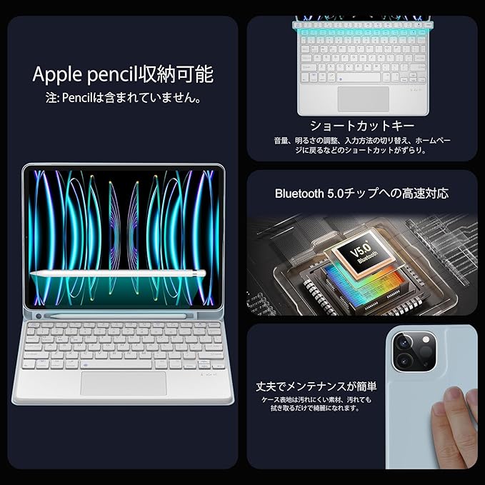 2025年 iPad Air 11インチ キーボード付きケース M3/M2 高精度タッチパッド搭載 i-Pad Air 第5世代 第4世代 キーボード 10.9インチ iPad pro 11インチ 第4/3/2/1世代に対応 マグネット着脱式キーボード 角度調節可能 ペンシルホルダー付き iPad Air 11インチ キーボード ブルー