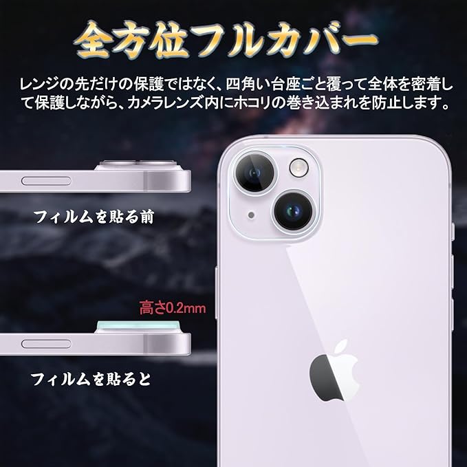 iPhone 14 / iPhone 14plus カメラフィルム カメラカバー [日本旭硝子製 全面保護 指紋防止 高い光透過率 貼り付け簡単 気泡ゼロ] iPhone 14 / iPhone 14plus カメラ保護 レンズ フィルム 【2枚セット】