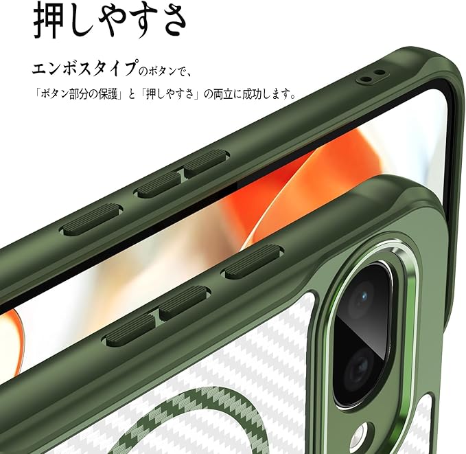【設計】本製品は背面に高級感あふれるカーボン調テクスチャーと黄変防止コーティング